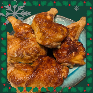 市販の味付きチキンはほとんど食べられないため、「鶏肉を焼いて、子どもが食べられるタレをサッと絡める」だけ。がぶっと食べて“クリスマスの特別感”を味わいます。